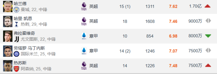 在联赛的15场首发中,哈兰德便已打入21球,并有三次助攻。场均超过一球的贡献,使得他的身价一度来到了世界第一的位置。