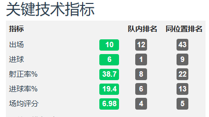 他在中间场不仅能够来到肋部进行接球、带球并完成“支点”的背身对抗,同时在门前的得分效率上也要高于其他球员。