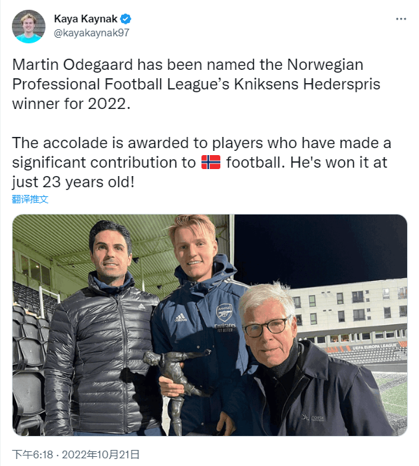 不过这仅仅是一个小插曲罢了,挪威足球依然深爱着厄德高。这场比赛结束后,厄德高就被授予了挪威足球的突出贡献奖。