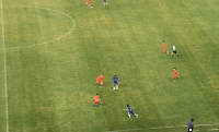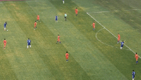 上半场第4分钟,张晓彬起球,陶强龙禁区内接球后晃开防守球员打门,皮球被对方门将抱住;