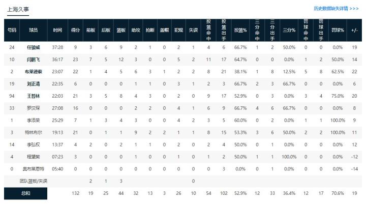 末节,两队均保持着不错的进攻效率展开了对攻模式,上海队稳扎稳打始终占据着场上绝对主动,随着时间流逝比赛也早早失去了悬念。最终全场比赛结束,上海132-113山西。