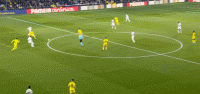 此役上半场,比利亚雷亚尔的控球率高达54%,全场比赛下来的控球率(48%)也没有落后多少。基科-塞迪恩的球队能够占据主动,一方面是己方的控球和压迫能力确实在线,另一方面就是皇马的逼抢和跑动能力不佳,很难在中前场破坏对手的进攻,总是被黄潜通过传导+调度从弱侧找到前进通道,落位于后场时也不能保证对二点球的控制,防线背负的压力迟迟得不到缓解。