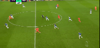 第二张:球队进入到阵地渗透战时,在很深的位置回撤,作为球队推进过渡的桥梁。
