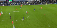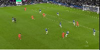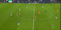 第二张:本图是接“有球推进”版块里,对阵利物浦的第四张图的后续。带球推进时,面对传中机会犹豫,向内扣球时被对手识破意图断球。属于意识方面的决断问题。