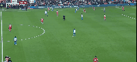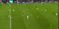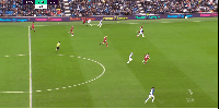 第二张:在靠后位置接球,随后在大约30米区域抽射,稍稍高出横梁。射门技术运用得相当不错,差之毫厘。(由于动图大小原因,前面的画面无法展示。此球是布莱顿后场断球,弗格森的位置几乎处在前卫线,再次表现出他的回撤特点)