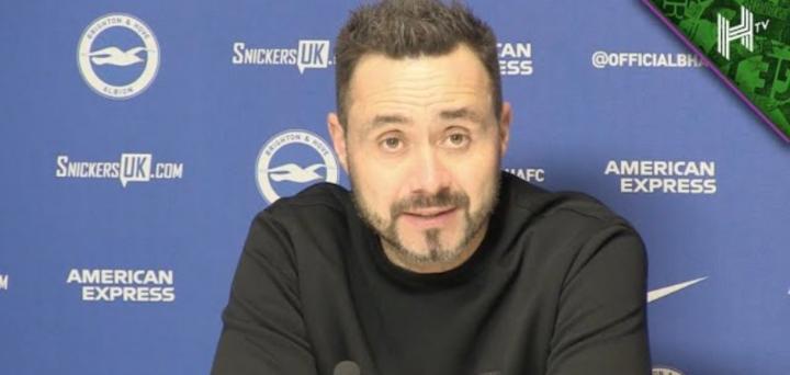 罗伯托·德泽尔比正在布莱顿树立一种高标准。尽管他的青年军在英格兰顶级联赛中首次在客场打进四球,但在周二击败埃弗顿后,他并不开心。在古迪逊公园球场4-1获胜后,有球迷向意大利人表示,这是一场出色的比赛,他对自己所支持球员的出色表现高兴得无以言表!