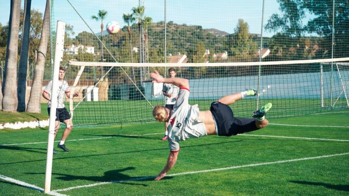 于是,以西班牙“三王节”的狂欢声,和其他球队的比赛的击球声作为背景,美因茨球员着实体验了一把魔鬼训练。就连短暂的休息时间,大家也没闲着。网式足球,网球,也成了保持身体状态的好点子。