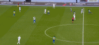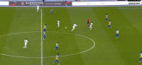 (图)皇马的高位压迫体系设计地有问题,边后卫的位置过于靠后,莫德里奇需要与对手争顶。