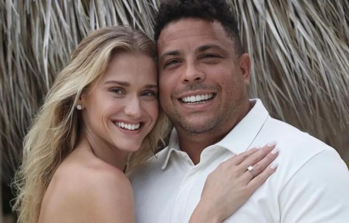 巴西传奇球星罗纳尔多近日向交往多年的女友赛琳娜-洛克斯求婚成功,女友幸福晒照。