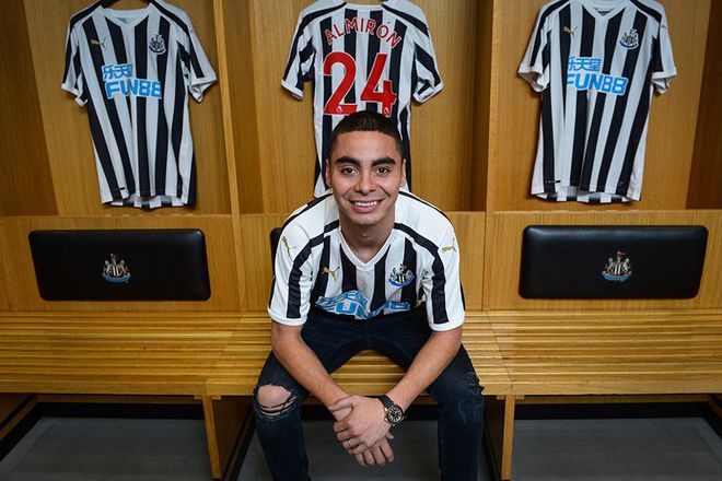 时任主帅贝尼特斯的日子并不好过,俱乐部将引援的目光投在了大洋彼岸发挥出色的阿尔米隆。2019年1月份,阿尔米隆以2400万欧元的转会费来到了电影《一球成名》的梦想之地—圣詹姆斯公园球场。