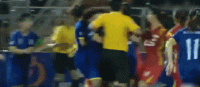 起初还在场边看戏的主裁,在边裁的提醒下,才反映过来,这不是两国轻量级的拳王群殴赛,而是一场足球比赛,迅速掏出多张红牌。