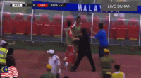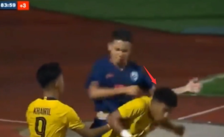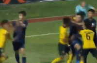 局势迅速变得一片混乱,马来西亚球员的目的明确,倒地碰瓷耽误时间。失去理智的泰国球员,则变得狂躁,直接来了一个传说中的接化发。