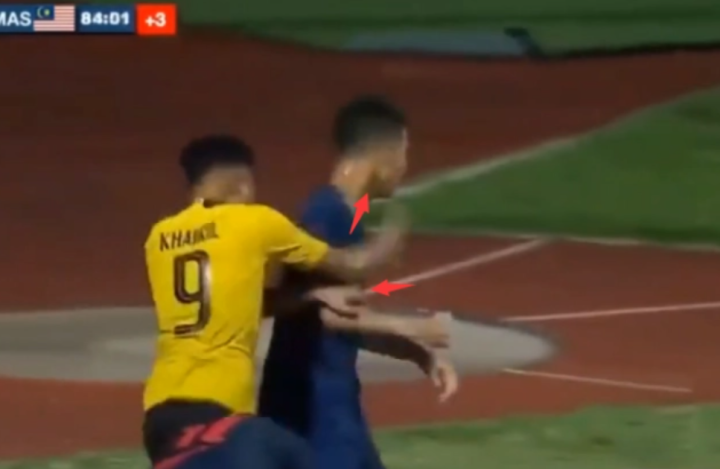 2018年8月亚运会前的一场热身赛上,马来西亚U23对战阿联酋U23。比赛最后时刻,马来西亚仍然2-0领先,此时阿联酋门将发动快攻,8号哈勒凡向前冲刺的途中,直接给了对方一个肘击。