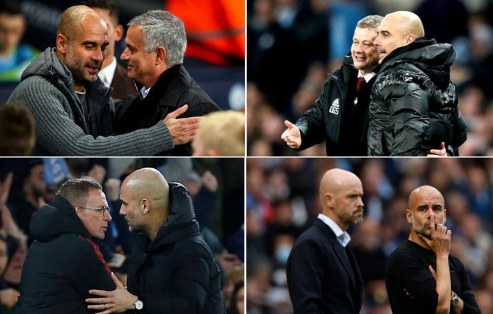 (图)瓜迪奥拉明确表示尽量不会在比赛中使用双前锋,阿尔瓦雷斯本场没有获得机会。拉什福德&马夏尔都具备边中摇摆能力,非常适合滕哈格的体系。