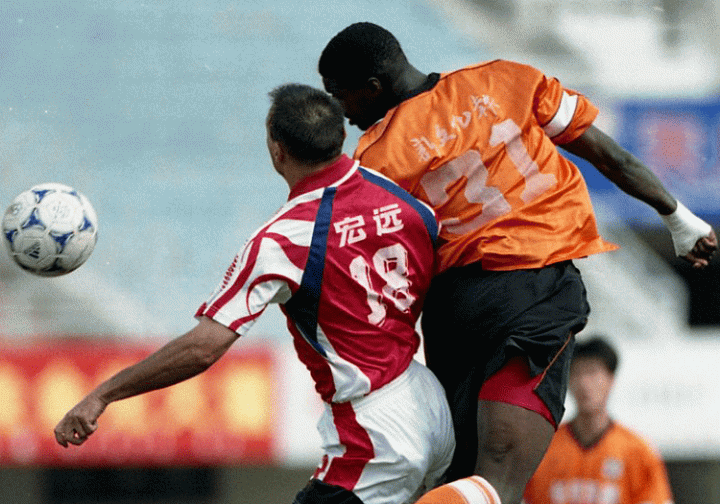 (亚泰巴班吉达与广东宏远球员争顶)