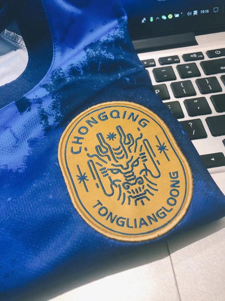 今年重庆铜梁龙由于是第一年组队且尚在中冠联赛,卡尔美方面在颜色层面上主藏蓝客粉色的设定也是整个中国足球较为少见的。但没有暗纹也并不意味着球衣没有任何设计。在背后的大号之中,隐藏着“重庆”的拼音,领口处铜梁龙队徽的龙头若隐若现,而队徽采用刺绣工艺,这点已经完胜中超的胶印队徽。背部的广告则是三奥雪山天然雪山矿泉水,我们有理由相信下赛季重庆能获得更多的衣上广告,获得更多的支持。