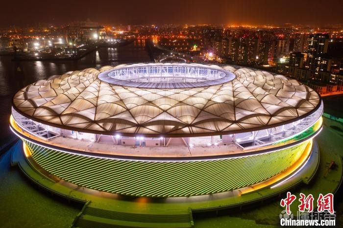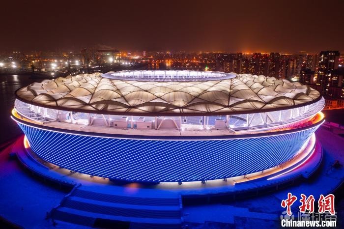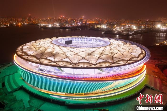 1月14日晚正值北方小年,大连梭鱼湾足球场项目泛光系统璀璨绽放,为大连人民送上新春祝福。