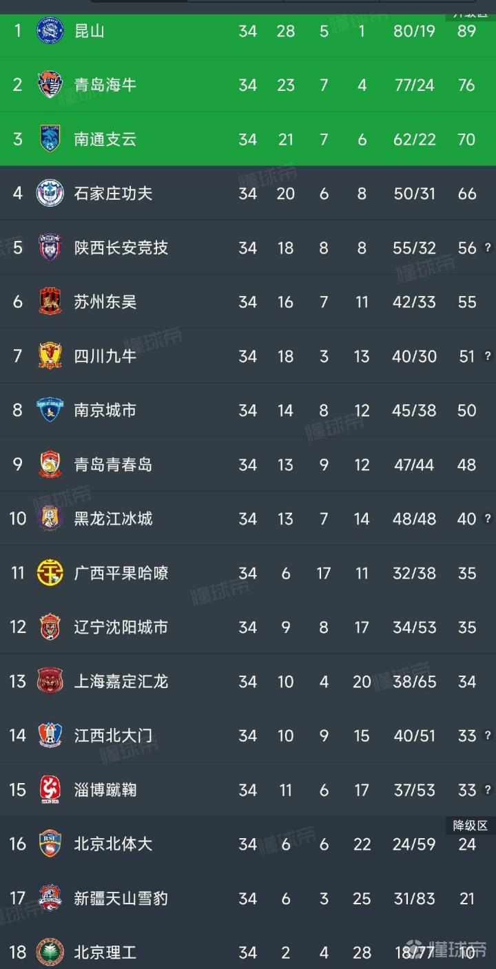早些时候结束的中甲联赛,昆山以28胜5平1负的优异战绩夺得队史首个中甲冠军,将与青岛海牛、南通支云一同升入2023赛季中超联赛。