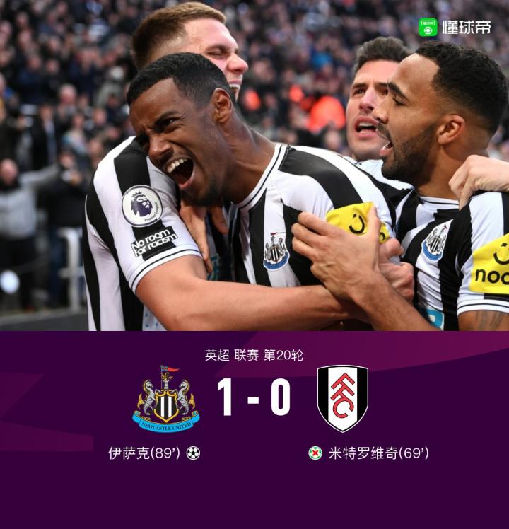 第89分钟,威尔逊送出助攻,伊萨克头球破空门,纽卡斯尔联1-0富勒姆!