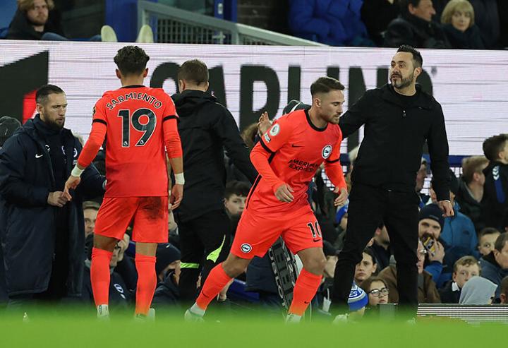在2023年1月4日布莱顿4-1战胜埃弗顿的比赛中,麦卡利斯特在下半场替补出场。
