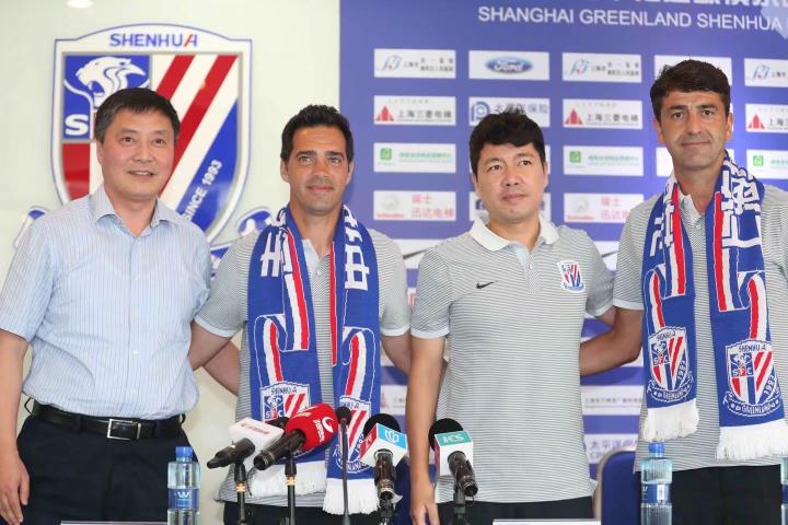 (图)2017年7月,申花俱乐部与西班牙教练戴维·皮里和胡安·路易斯正式签约