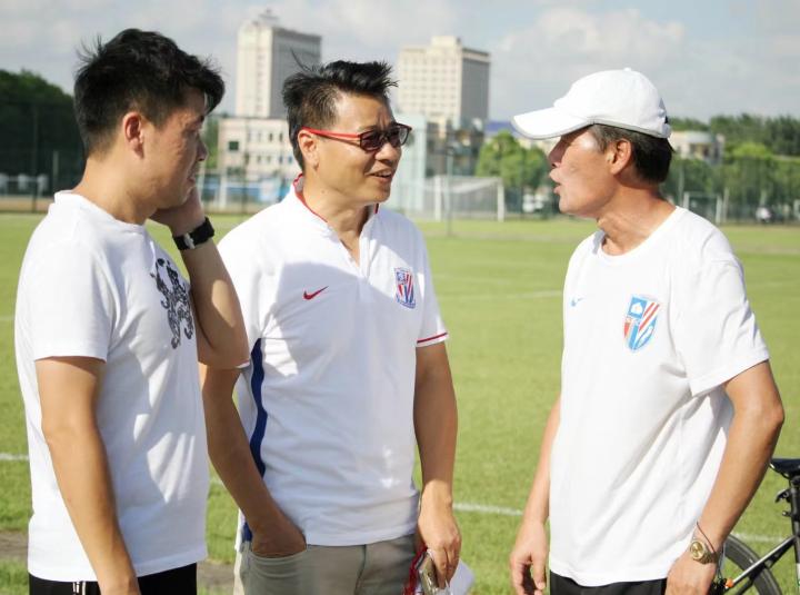 (图)总经理周军、时任青训总监吴金贵和时任申花9900梯队主教练许逸斌
