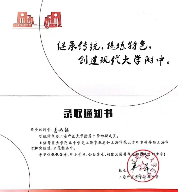 (图)申花07梯队李浩铭被上海师范大学附属中学录取
