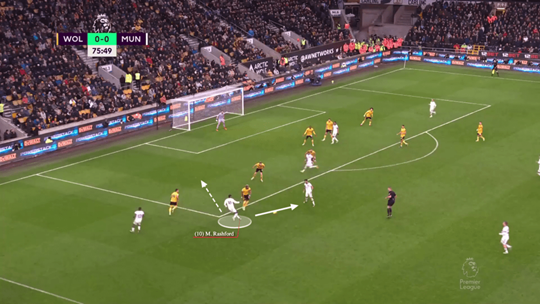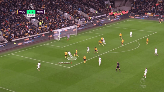 他最初的传球给了他足够的时间来跑进空间,而后卫们却被困在球门前。当奥托发现他的跑动时,拉什福德已经领先了一秒,因为他很早就开始冲入禁区。