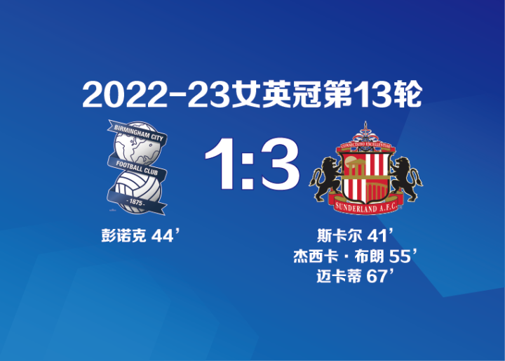 上半场,斯卡尔和彭诺克先后头球破门,两队1-1暂时打平。下半场,杰西卡·布朗小角度破门,迈卡蒂再下一城。最终,伯明翰女足主场1-3不敌桑德兰女足,遭遇新年首败。