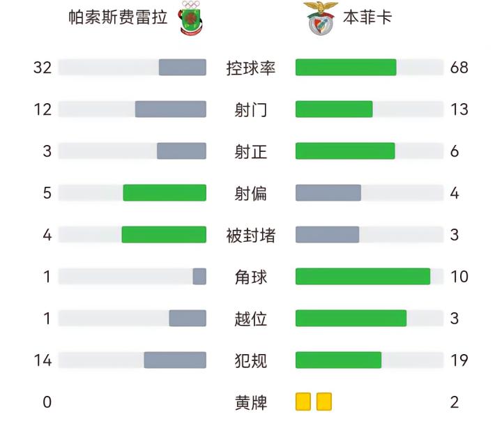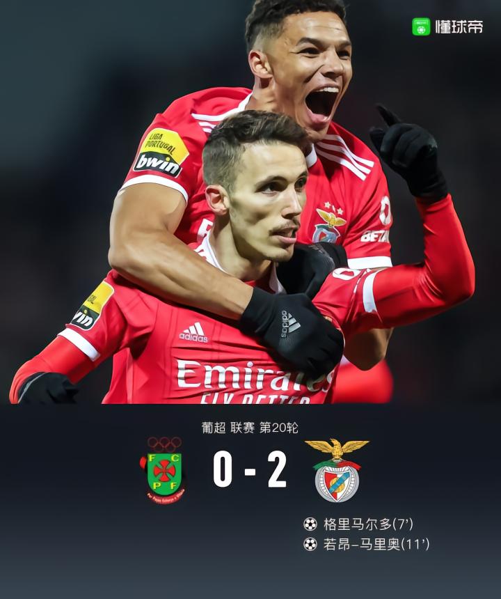 北京时间1月27日04:15,葡超第20轮提前进行一场比赛,本菲卡作客皇家马塔球场挑战帕索斯费雷拉,本场主裁判为戈迪尼奥。上半场,格里马尔多任意球世界波首开记录,若昂-马里奥补射再下一城。下半场,尼格尔-托马斯远程发炮中柱。最终,本菲卡客场2-0击败帕索斯费雷拉。