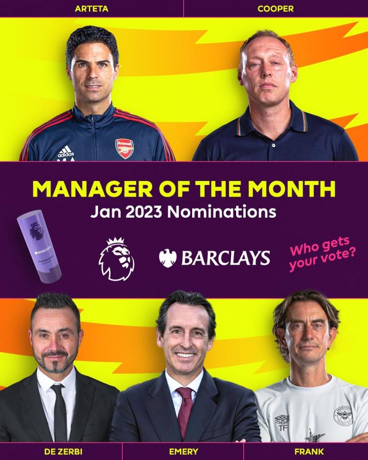 英超官方一月最佳主帅候选:阿尔特塔、埃梅里入围LaPulga @懂球帝2023-01-26 20:23英超官方公布一月最佳主教练候选,阿尔特塔、埃梅里等人入围。英超官方一月最佳主帅候选阿尔特塔(阿森纳):2胜1平库珀(诺丁汉森林):2胜2平德泽尔比(布莱顿):2胜1平埃梅里(阿斯顿维拉):3胜1平托马斯-弗兰克(布伦特福德):2胜1平展开更多