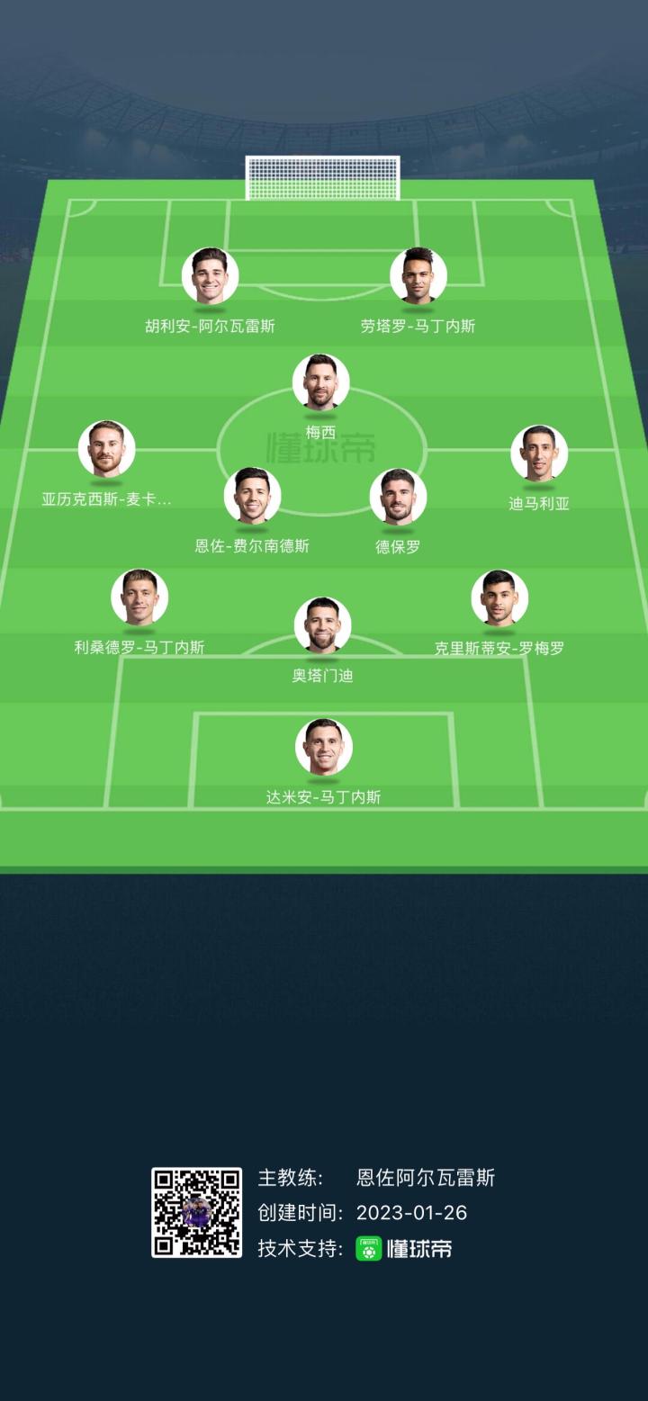 英国《卫报》2022年度百大球星阿根廷首发阵容1...恩佐阿尔瓦雷斯 @懂球帝2023-01-26 23:08英国《卫报》2022年度百大球星阿根廷首发阵容 1 梅西 20 达米安-马丁内斯 21 恩佐-费尔南德斯 32 胡利安-阿尔瓦雷斯 38 安赫尔-迪玛利亚 47 亚历克西斯-麦卡利斯特 48 罗德里戈-德保罗 70 劳塔罗-马丁内斯 72 克里斯蒂安-罗梅罗 81 利桑德罗-马丁内斯 100 奥塔门迪展开更多
