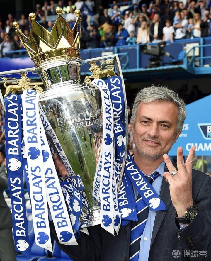 穆里尼奥一共两次执教切尔西,他率队在2004/05赛季、2005/06赛季夺得英超两连冠,又在二进宫后的2014/15赛季率队夺魁。