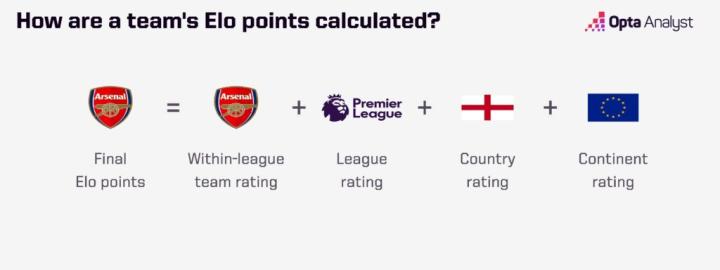 例如,如果曼城对阵瓦斯科·达·伽马,两支球队的Elo分数将与欧洲和南美的Elo分数一起更新。