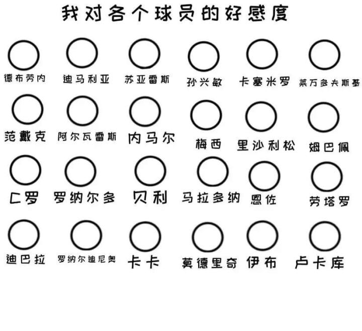最近看到好多我懂老哥都在玩这个,你对这些球员的好...活动君 @懂球帝2023-01-29 15:35最近看到好多我懂老哥都在玩这个,你对这些球员的好感度有多少?除了以下球员,你或者又对哪些名不见经传的小球员好感爆表?涂颜色、P表情、好感度打分……来评论区或点击此处进入话题标签分享你的球员好感度吧!展开更多