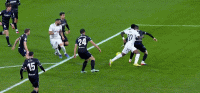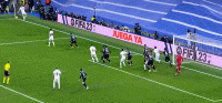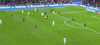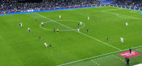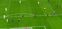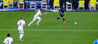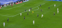 无论是塞瓦略斯的强行盘带,还是巴尔韦德的传身后球,皇马都能通过肋部完成向前传送,帮助两名边锋进入攻击位置,这就是充分利用场地空间的结果。塞瓦略斯的任务是协助克罗斯完成防守和出球,保护卡马文加,巴尔韦德向前参与进攻的权限更大。