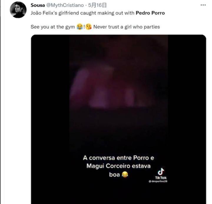 随着事态的发酵,推特上甚至还传出一段视频,发布者称视频中亲吻的一男一女就是佩德罗-波罗和Magui。一位Uber司机还声称自己接到了波罗和Magui的单子,这名司机与朋友说道:“在早上5点的时候,我开车到了一家里斯本的夜总会接这二人上车,他们两人紧贴着,然后便开始了热吻。”