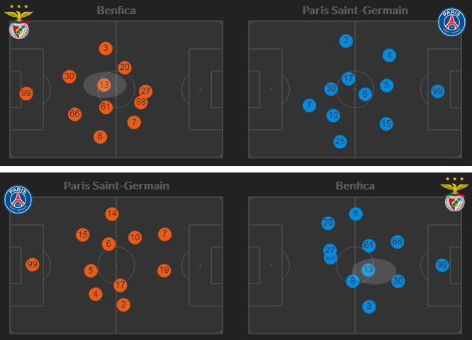 罗杰-施密特对4231阵型情有独钟,贡萨洛-拉莫斯突前,若昂-马里奥、拉法-席尔瓦和内雷斯组成二线进攻梯队,恩佐-费尔南德斯坐镇防线身前,与其搭档双后腰的是弗洛伦蒂诺-路易斯。