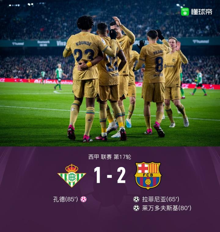 巴萨继续在西甲赛场高奏凯歌,终于解禁回归的莱万成为了他们获胜的功臣