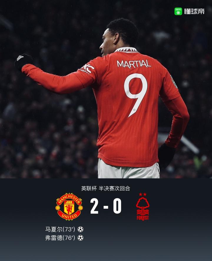 【英联杯曼联2-0诺丁汉森林,总比分5-0晋级决赛,马夏尔破门】