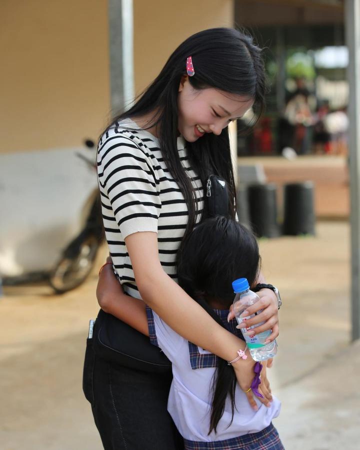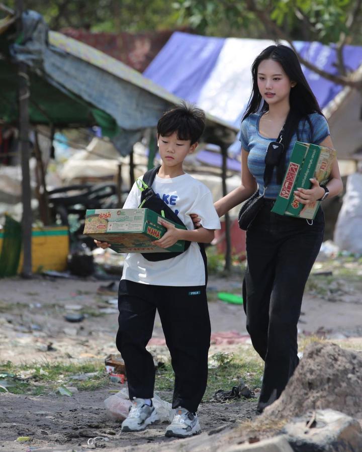 人美心善。韩国足球名宿李同国的女儿李在诗在柬埔寨做慈善。大发(李时安)也在帮忙分发零食。