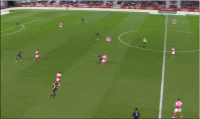 我相信这是一次有意而为之的攻门,通过两次转移,打乱对方禁区的布防,给巴洛贡创造机会。巴洛贡这次的跟进速度很快,但队友头球的摆渡球在弹地时的位置有些靠中路,离巴洛贡远了一步,没能转化为进球。