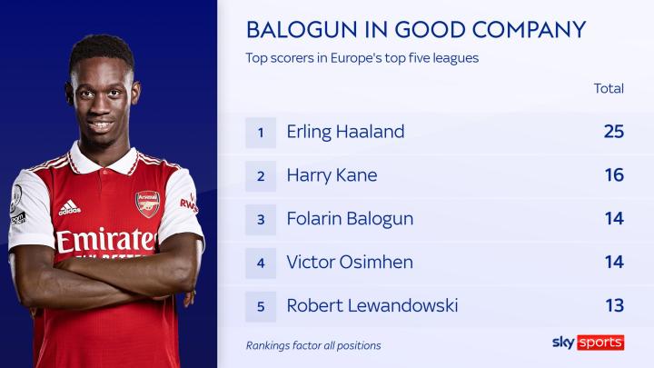 阿森纳外租小将巴洛贡,凭借一个帽子戏法,帮助球队4:2逆转洛里昂。同时个人也在本赛季的法甲射手榜上反超姆巴佩,成为目前法甲联赛射手王,在五大联赛只有哈兰德和哈里·凯恩两名英超球员进球比他更多。