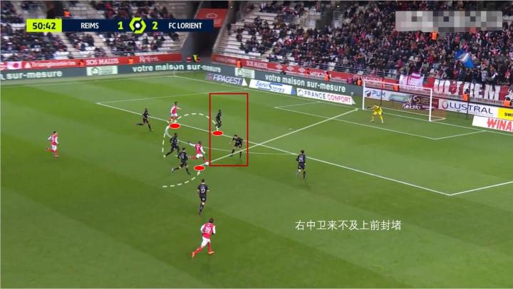 来看这次,兰斯后场的直塞直接找巴洛贡,巴洛贡想直接一脚球做给身边接应的队友。但是这次做球的质量很差,反倒是直接做给了对方边后卫,浪费了一次队友不错的直塞。