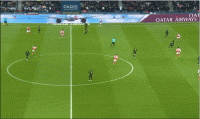 巴洛贡这次移动很聪明,早在第一波压迫时,巴洛贡就观察到了对方右中卫的失位,从而快速向前落位。在队友直塞时,对方的左中卫来不及补位,右中卫回防也干扰不了巴洛贡的传球。