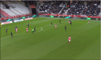 来看这次队友边路传中后,第一点找后点的队友。队友直接的头球攻门,没能完全顶正,顶了一个弹地。巴洛贡这次跟进补射,可惜捅在了门将身上,错失一次得分机会。