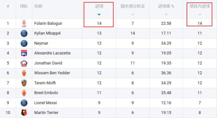 在射手榜前十名中,他的射门转化率为22.58%,甚至高于巴黎的姆巴佩和梅西。不过如果考虑到巴洛贡主要的进攻方式和大部分的射门尝试都是在禁区内完成的,甚至很多在12码点附近位置,这个射门转化率其实算不上顶级。