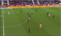 这次就是当一名中场后插上的队友作为突前位置的球员吸引了阿什拉夫和马金的注意力,给反跑的巴洛贡创造了空间。另一侧的拉莫斯第一下没能贴住巴洛贡,给了他射门的机会。