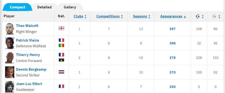同时,沃尔科特的108粒进球也让他成为了教授执教生涯中进球第三多的爱徒,80次助攻则排名温格所有学生中的第四位。