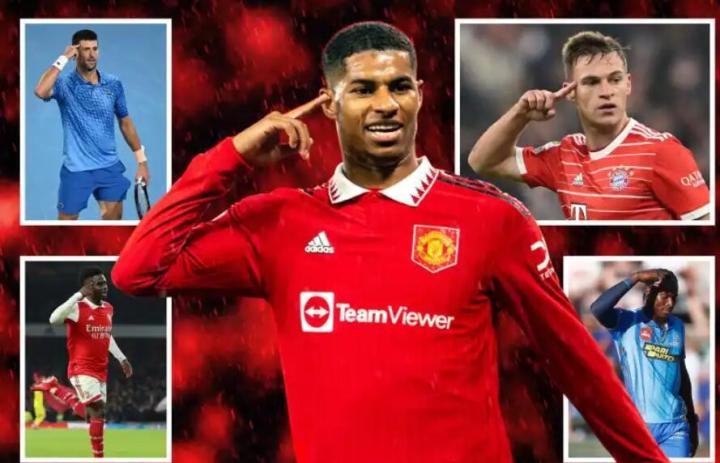 最近拉什福德的同款庆祝动作越来越多,拜仁中场基米希和网坛巨星德约科维奇最近都做出了类似的动作。